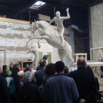 We bezochten Doezan Doepel van DSA architecten in de Vertrekhal, hij vertelde over zijn duurzame ideeën voor het gebied, o.a. het Cascade energy system en verschillende high‐tech biomassa experimenten. Vervolgens zochten we Joep van Lieshout op die ons met veel onthaal binnenhaalde, de lassers even tot stilte maande en uitgebreid aan onze club vertelde wat hij allemaal doet, maakt en vindt. Van post‐ apocalyptische utopieën tot nieuwe vormen van lokale landbouw en veeteelt en nieuwe ambachtelijkheid. Genoeg ideeën voor het gebied, zijn beelden kunnen alvast als aanjager voor gebiedsontwikkeling in het gebied dienen.